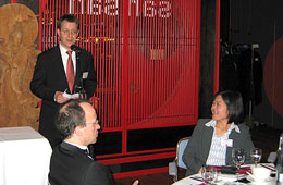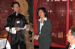 Abschließend wurde weiteren Gästen noch insbesondere gedankt. In diesem Sinne richtete Damin Ren seine Worte an den Webdesigner Herr Jianyao Ding von Kelly Webtech, der die Gestaltung der Internetseite der Veranstaltung (www.China-Lounge.net) übernommen hatte und auch als Photograph des Abends tätig war; an Frau Lianru Song der Frankfurter Filiale der Bank of China, die mit einem kostenfreien Bankkonto das Kinderhilfsprojekt unterstützt; an das Restaurant san san, mit Dank für die gute Zusammenarbeit, Mitplanung und Mitorganisation, sowie für die Bereitstellung der schönen Räumlichkeiten.