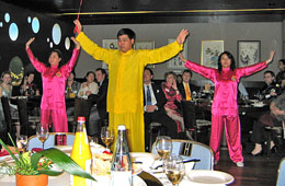 Für den Abend bereitete der Inhaber des Restaurants san san, Herr Som-Zei Lin, und seine Tochter, Yin-Ting Lin, Spezialitäten von feinster Qualität der Küchen Nord- und Süd-Chinas vor. Nach den Gaumenfreuden eines üppigen und sehr exklusiven Neujahrsbankett gab es noch einige besondere Programmpunkte.
