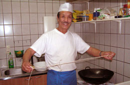 Meister Wang vom Restaurant MIAN beim Kochen der handgezogenen Nudeln |