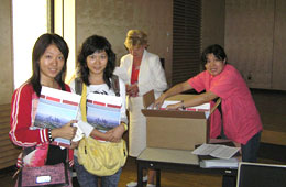 Frau Hu, Professorin aus der Sprachhochschule in Guangdong, verteilte gemeinsam mit Frau Cakir-Wahl und Frau Ludat Unterlagenmappen mit Informationen über den Sommerkurs und das Leben in Frankfurt an die Studenten. Frau Hu war begeistert von der Herzlichkeit der Gastgeber. Sie sagte, dass die Studenten nun zum ersten Mal im Ausland seien. Sie kommen aus verschiedenen Provinzen Chinas und studieren in Guangzhou. Das fünfwöchige Zusammenleben in deutschen Gastfamilien werde ganz neu und spannend für ihre Studenten und sicherlich auch für die deutschen Familien sein.