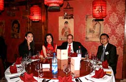 Das Restaurant san san im Westin Grand Hotel ist vielen von Ihnen bekannt. Seit Dezember 2006 wurden bereits viermal China Lounge-Veranstaltungen in diesem stillvollen Restaurant organisiert. Unter allen Restaurants der ChinaCard-Partner ist das san san, dank des Innenarchitekten und Inhabers, Som-Zei Lin, und seiner Tochter San San, auch das schönste im Design. Für den Abend des Sinotreffs wird das Restaurant san san für uns speziell ein Chunfen-Menü zusammenstellen, darunter auch einige Spezialitäten des Hauses. Alle Gerichte wurden nach bestimmten Prinzipien ausgewählt, die das Gleichgewicht des Körpers und die Gesundheit allgemein fördern. Das Abendmenü kostet 25 Euro (inkl. chinesischem Tee, andere Getränke extra) und wird direkt dort bezahlt.